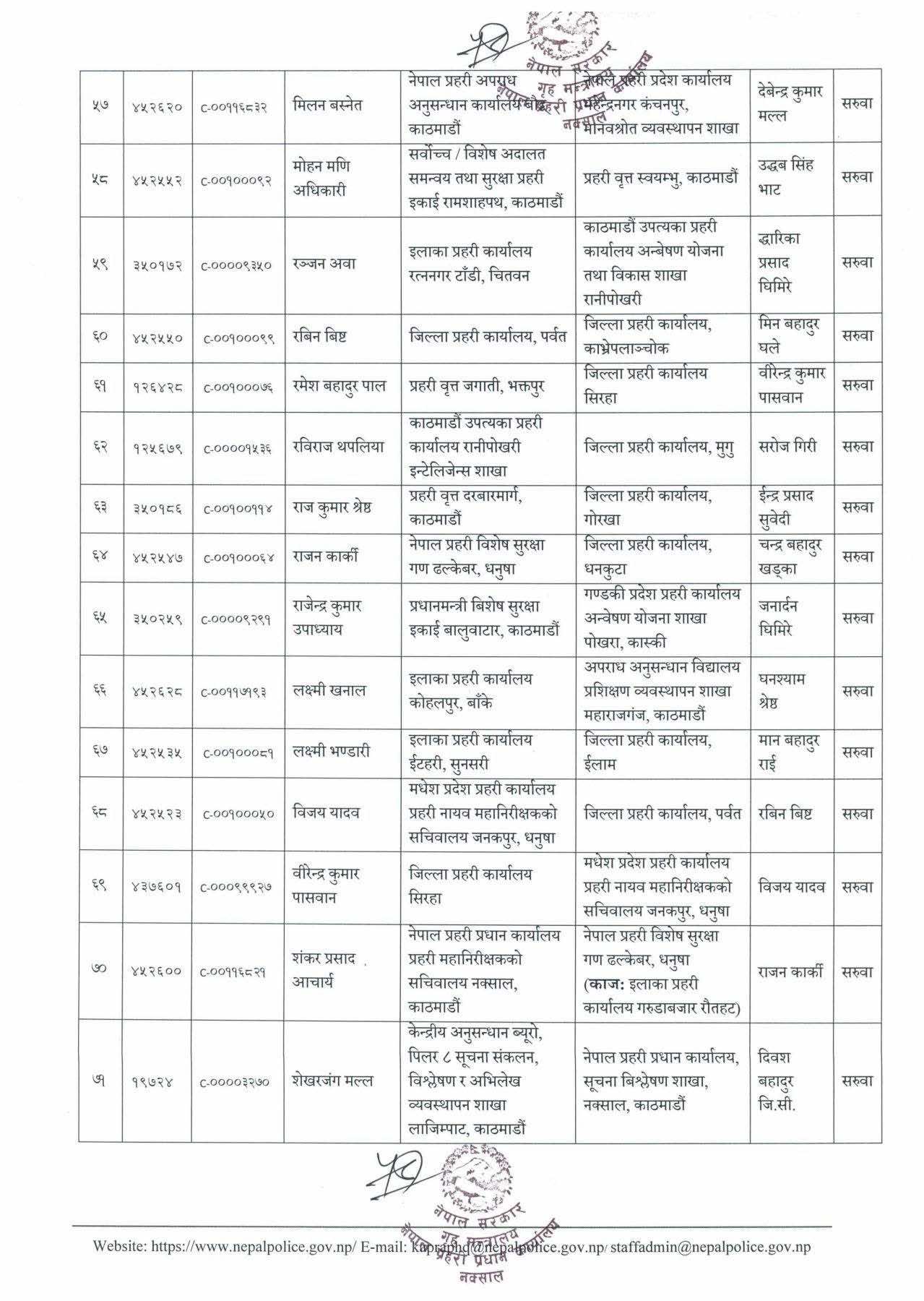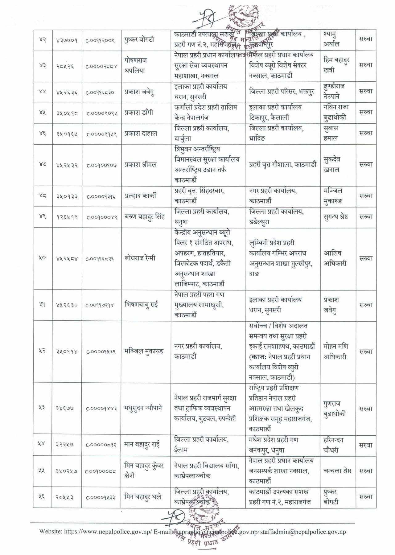 काठमाडौं। नेपाल प्रहरीका ४८ जना एसपीको सरुवा भएको छ।