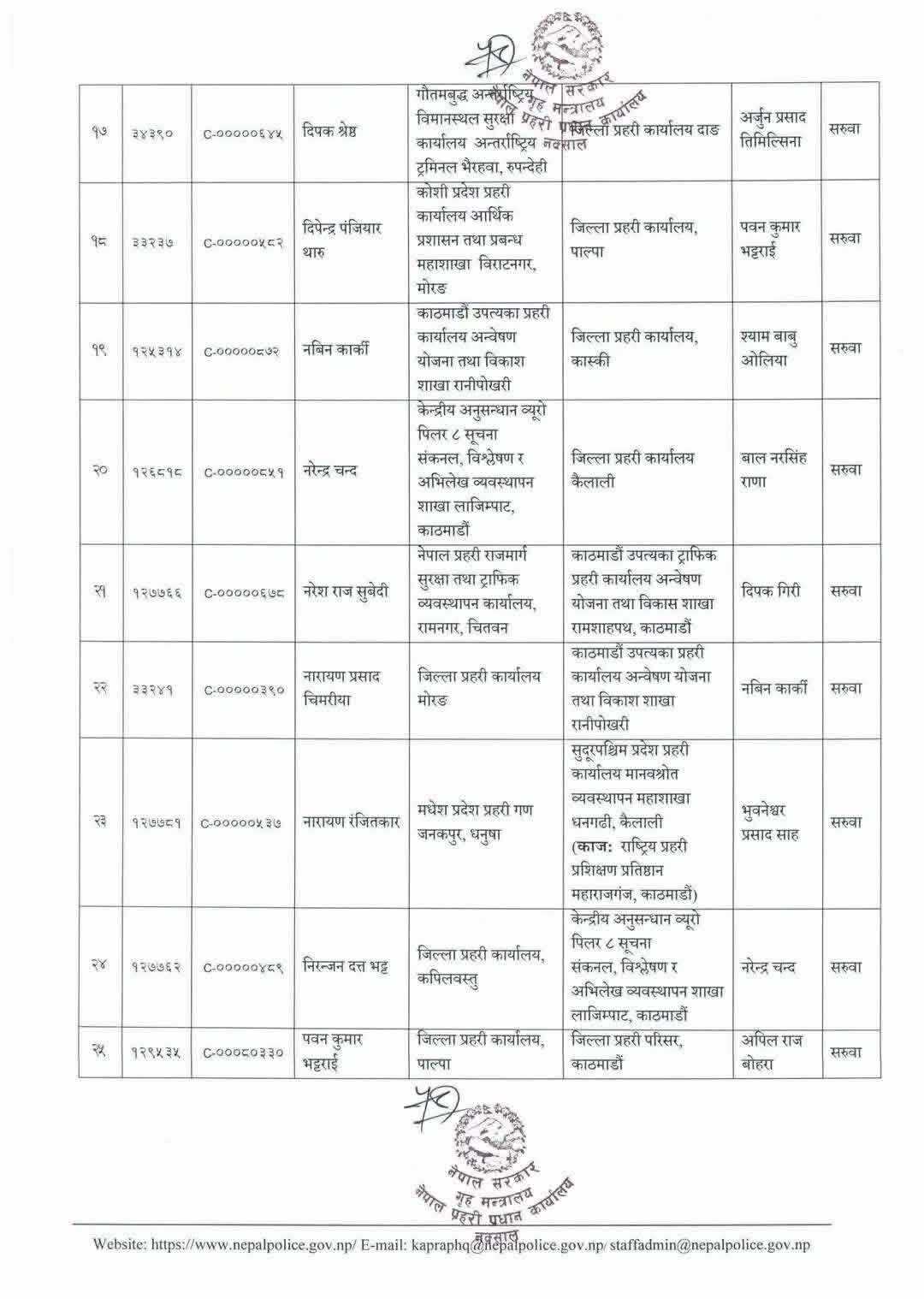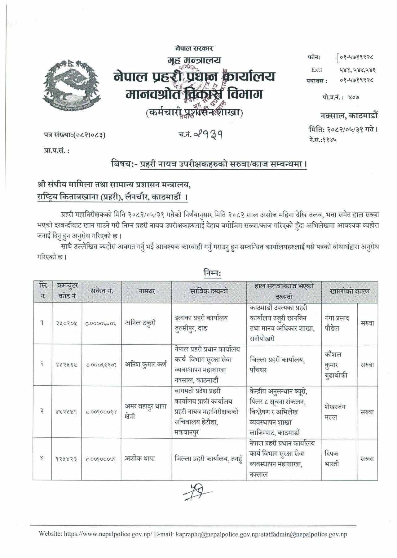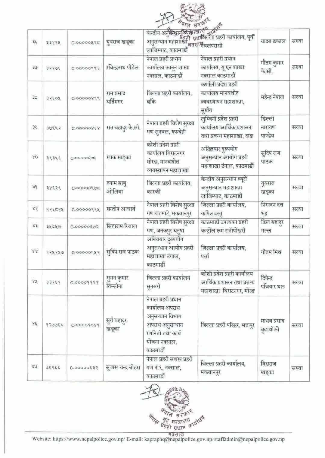 प्रहरी महानिरीक्षकको निर्णयानुसार उनीहरुको सरुवा गरिएको प्रहरी प्रधान कार्यालयले जनाएको छ। मंगलबार उनीहरुको गरिएको हो।