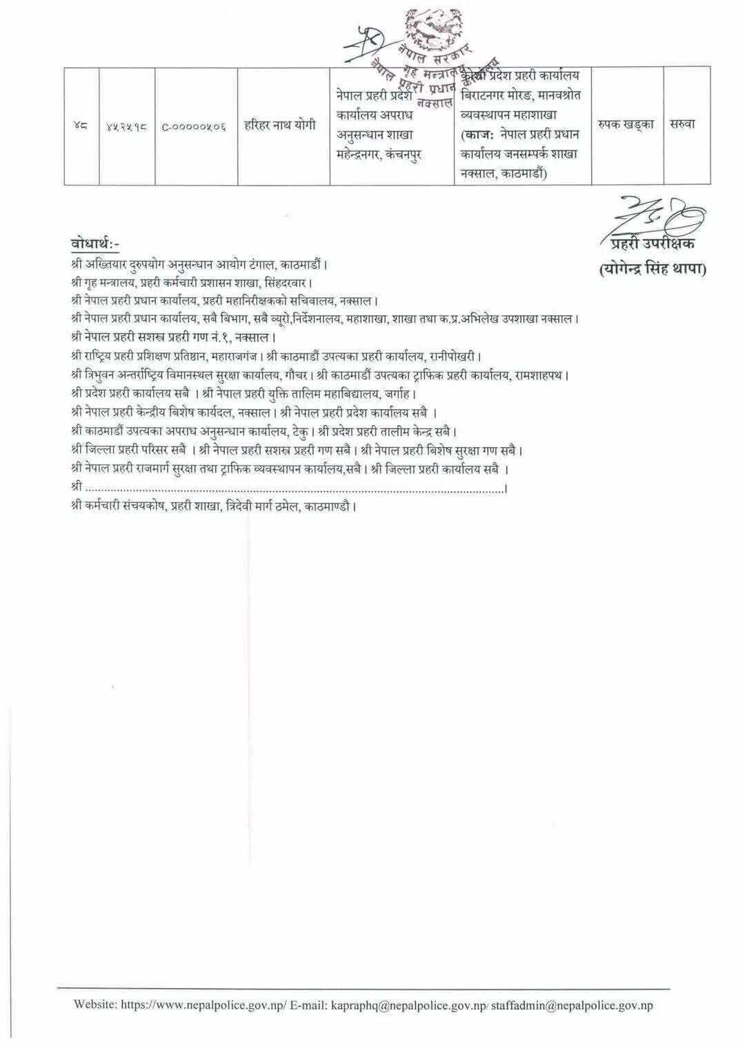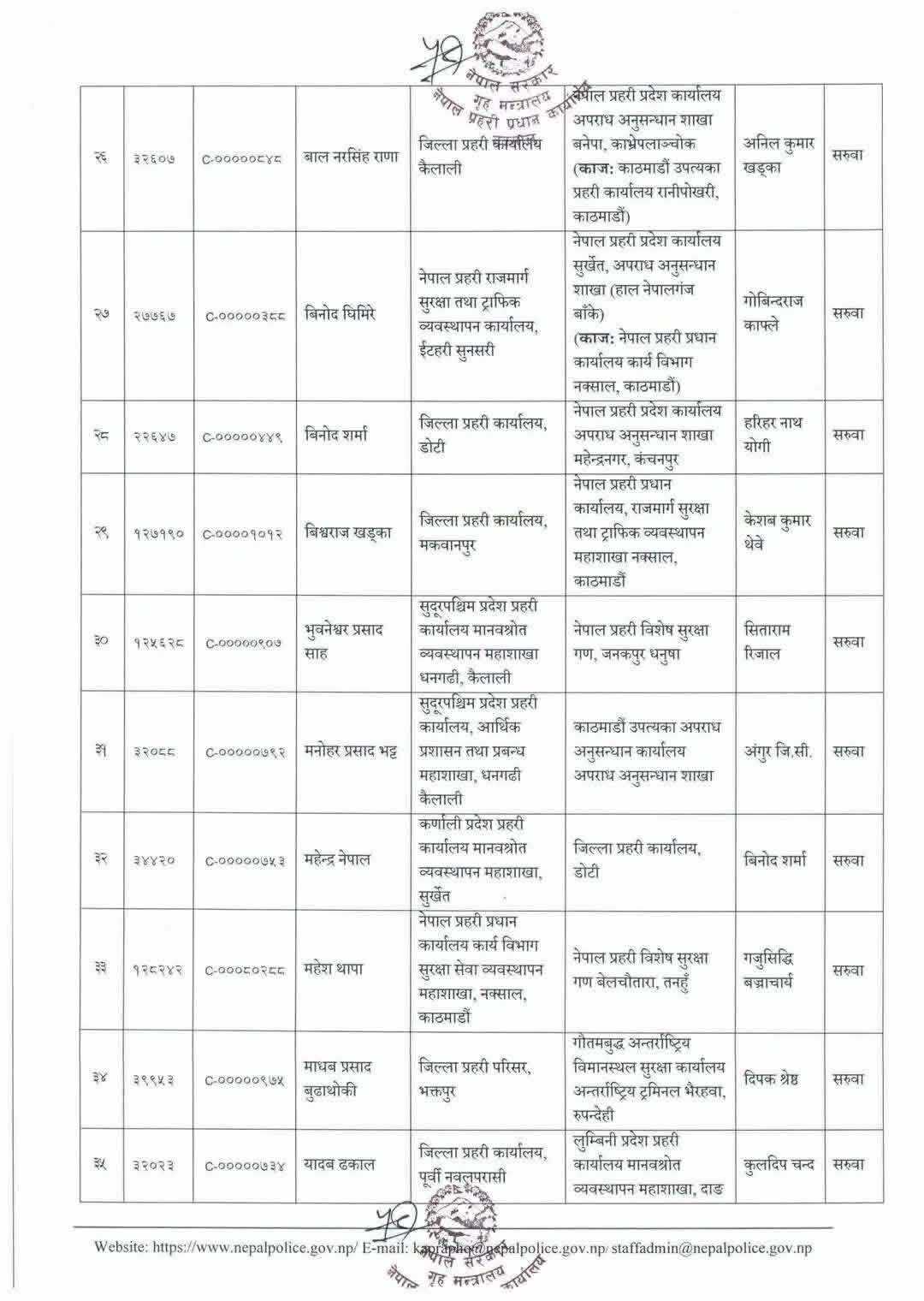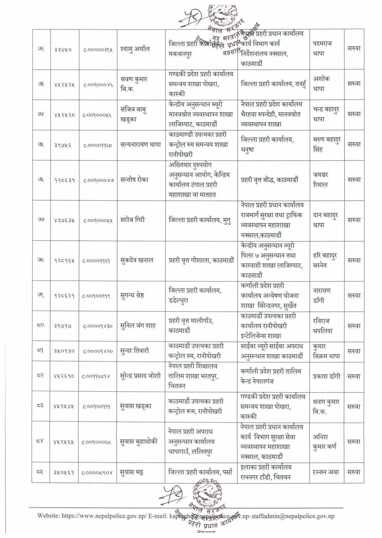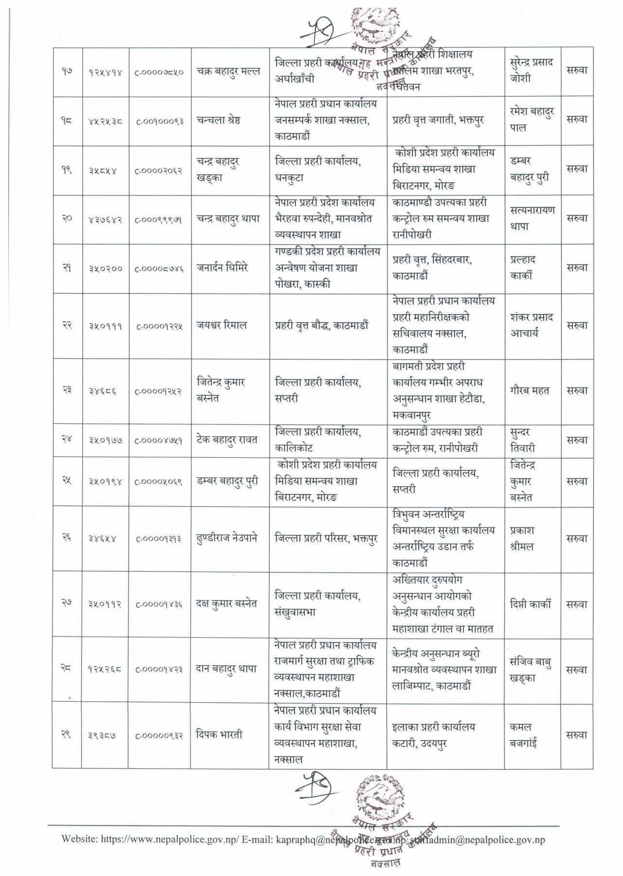 प्रहरी महानिरीक्षकको निर्णयानुसार उनीहरुको सरुवा गरिएको प्रहरी प्रधान कार्यालयले जनाएको छ। मंगलबार उनीहरुको गरिएको हो।